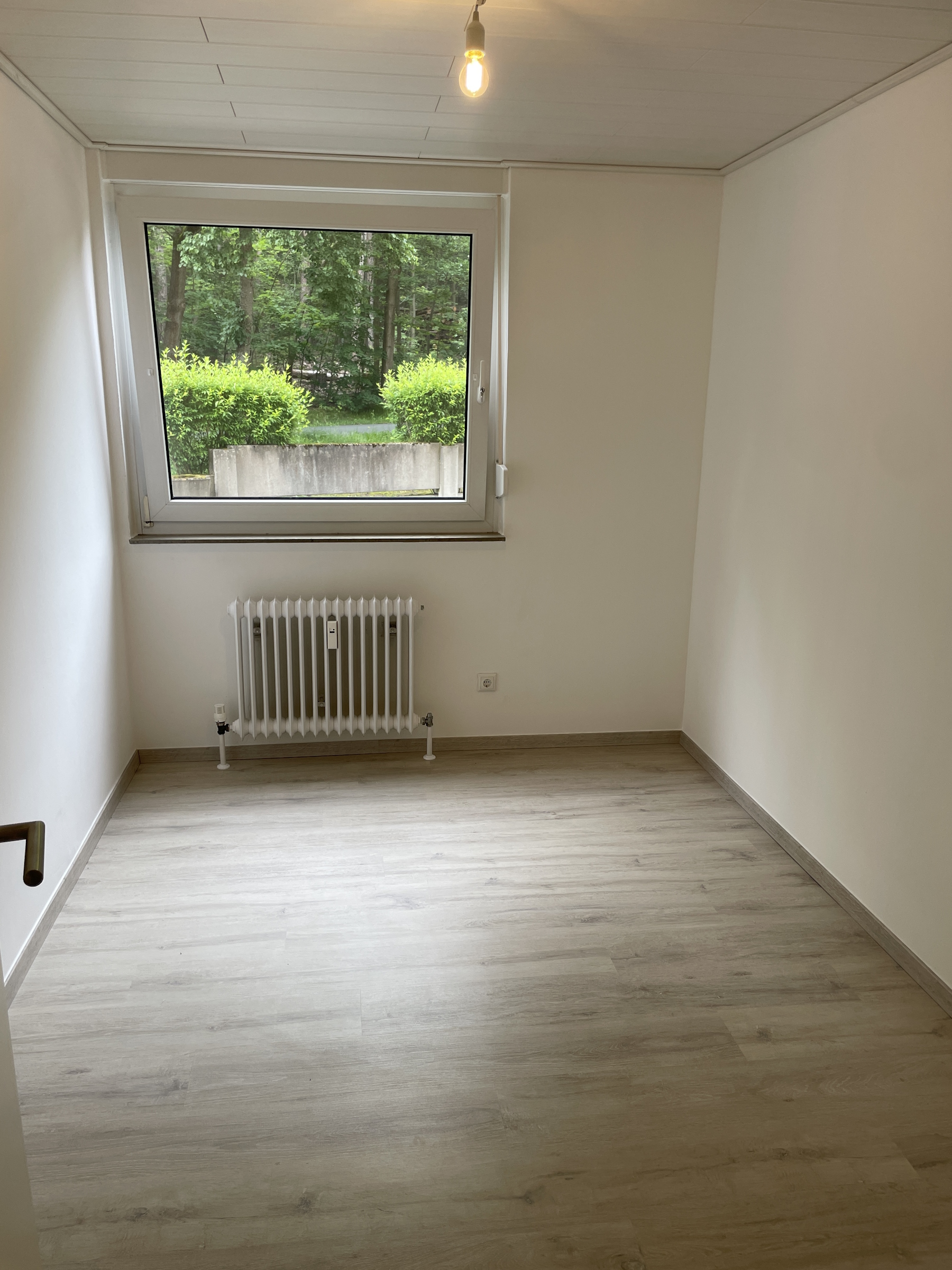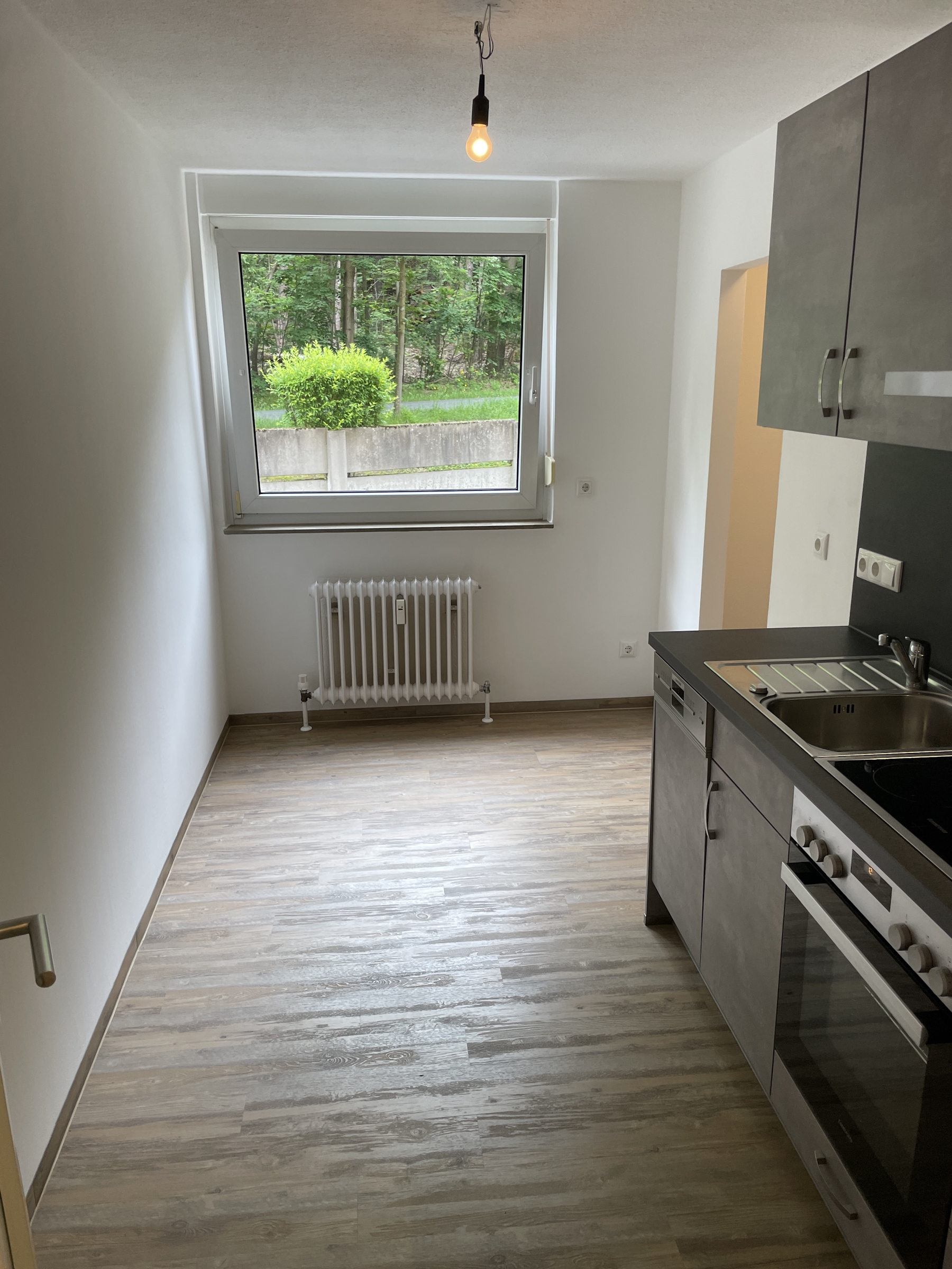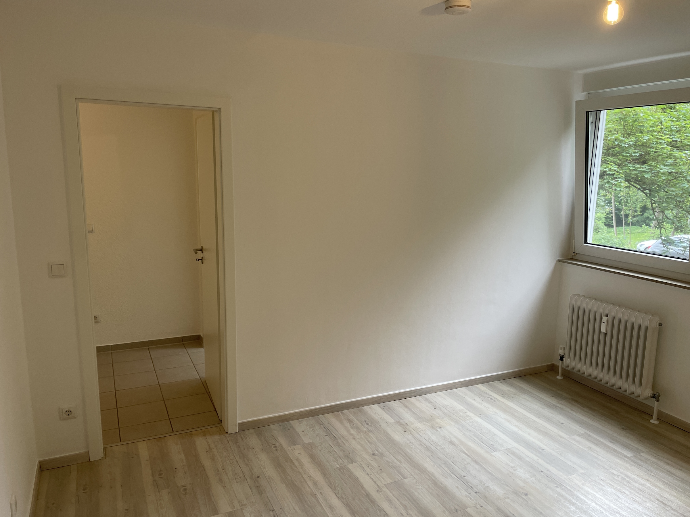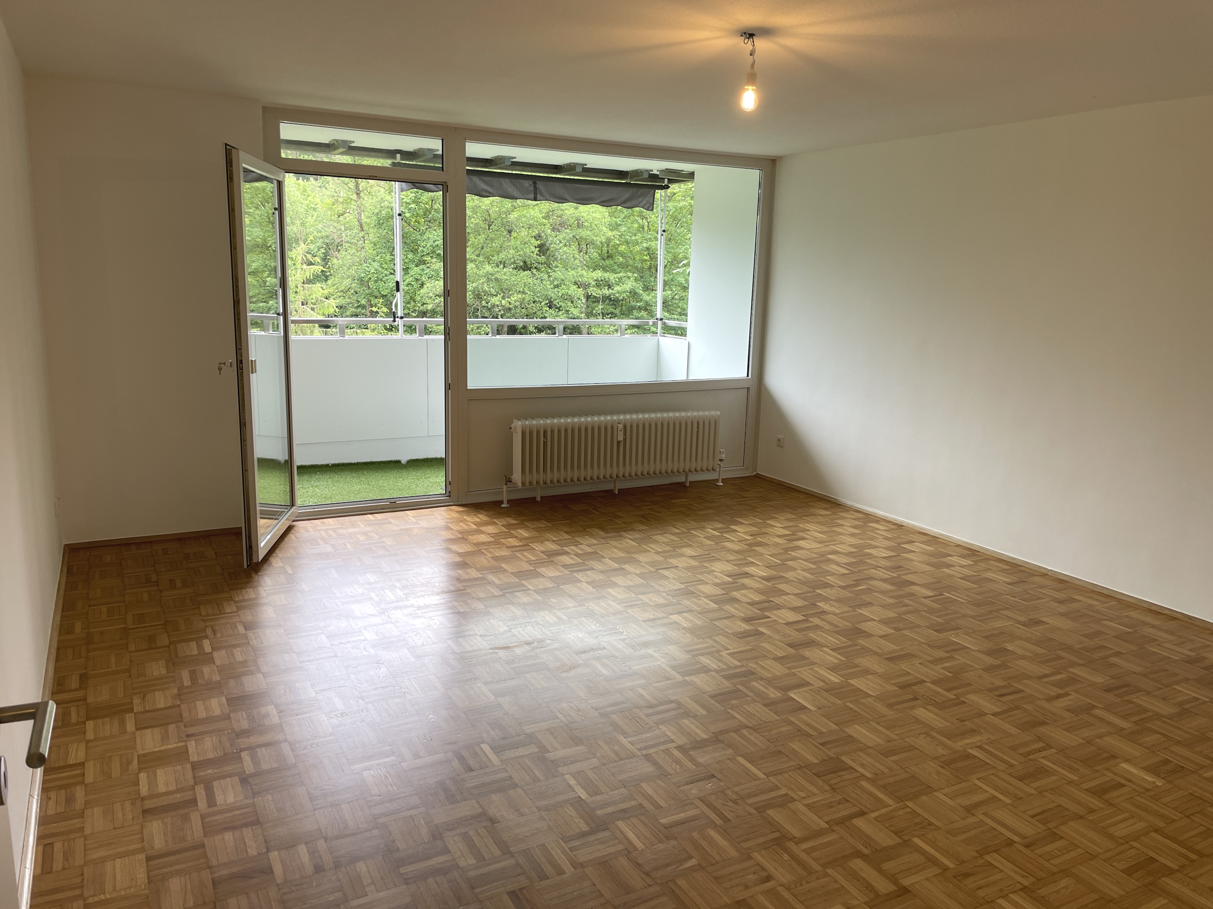 Die 3-Zimmer-Wohnung überzeugt durch einen sehr schönen Grundriss mit 2019 komplett erneuerter moderner Küche mit Geschirrspüler. Ein Kühlschrank ist nicht Bestandteil der EBK, hierfür ist aber im an die Küche angrenzenden Abstellraum oder in der Küche genügend Platz. Im AR kann auch eine Waschmaschine aufgestellt werden. Der Balkon ist über das Wohnzimmer zu erreichen. Dieser ist nach Südwesten ausgerichtet und bietet einen "grünen Blick" über eine Kleingartenanlage zum Waldrand. Durch den Flur erreicht man das WC sowie die beiden Schlafzimmer, das Badezimmer mit Wanne und Fenster sowie die Küche. Der gesamte Bodenbelag ist 2019 erneuert bzw. der Parkettboden aufbereitet worden und wohnlich. Die Türen wurden ebenfalls erneuert und unterstreichen durch ihre weiße Farbe den hellen und freundlichen Eindruck der Wohnung. Zur Wohnung gehören ein Kellerabteil, die Nutzungsmöglichkeit eines großen Hallenbades samt Sauna und die Möglichkeit auf Gemeinschaftsstellplätzen der Wohnanlage das Auto hausnah abzustellen. Für das Gemeinschaftseigentum steht ein Hausmeisterservice zur Verfügung.