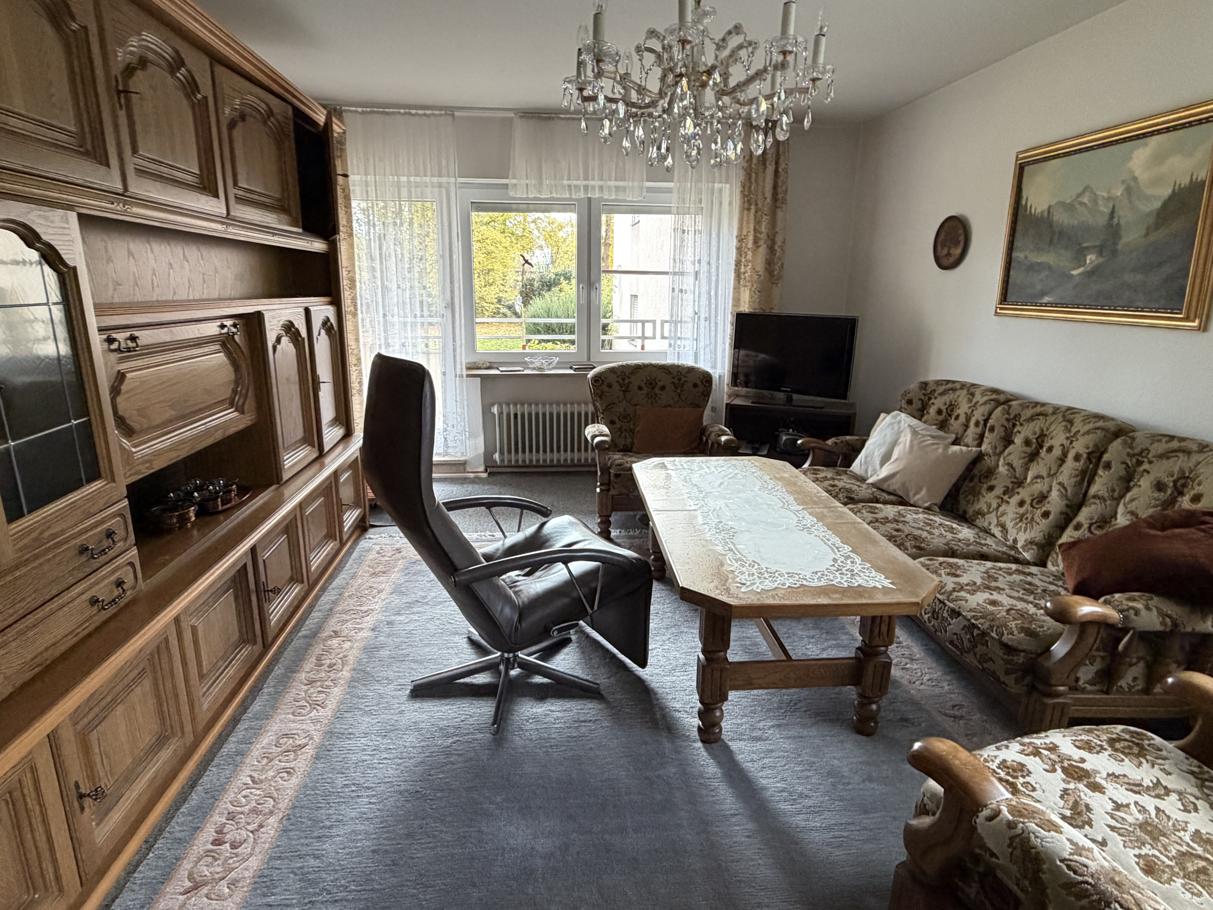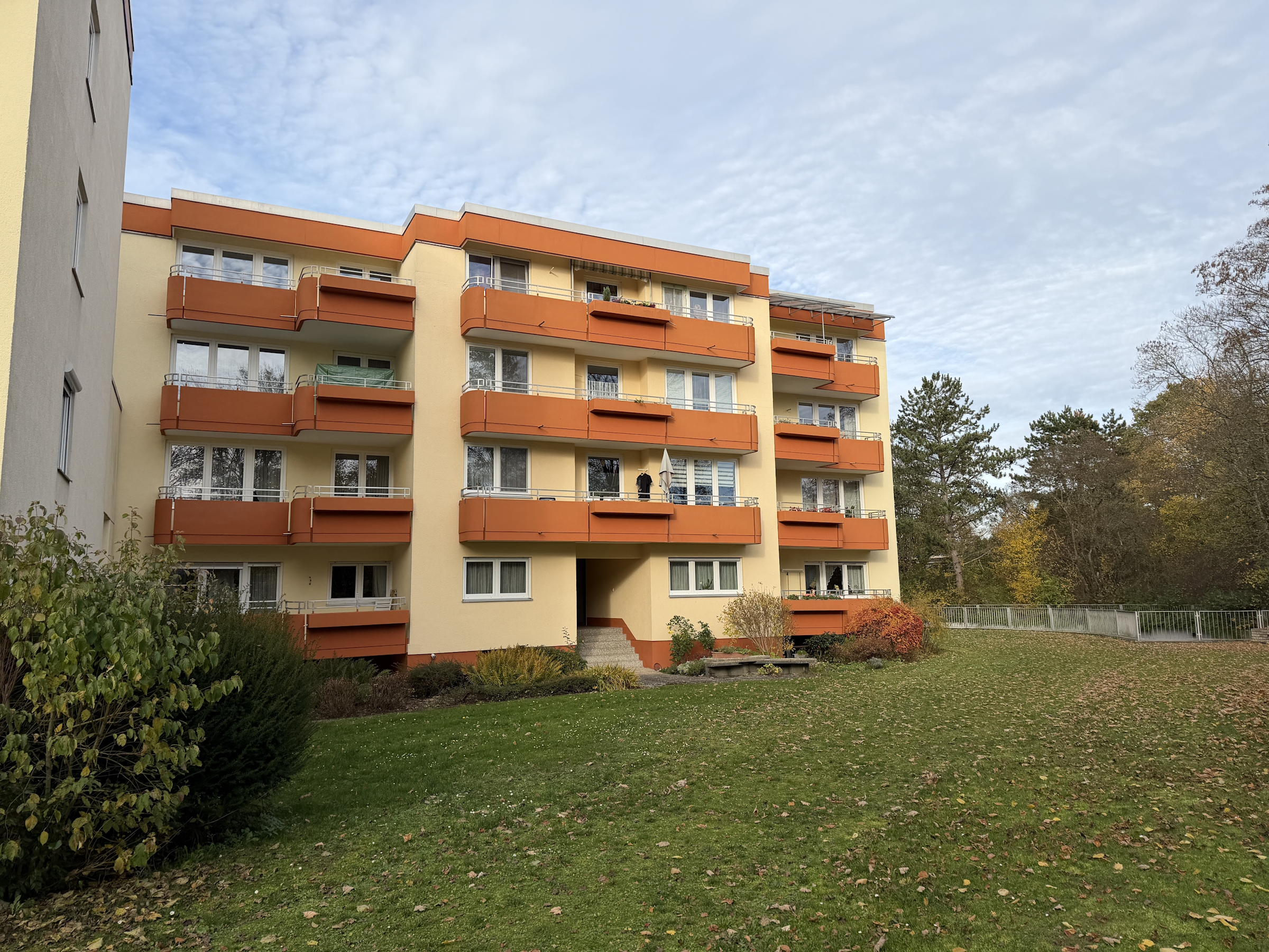 Diese Wohnung mit einer Wohnfläche von ca. 90 m² befindet sich in einem gepflegten Gebäude aus dem Jahr 1975 im Hochparterre. Die Wohnung verfügt über drei Schlafzimmer sowie einen Balkon mit einer Fläche von ca. 8,3 m² der einen Blick ins Grüne bietet. Des Weiteren gibt es ein modernisiertes innenliegendes Badezimmer, eine Zentralheizung und einen Keller mit einer Fläche von ca. 4 m².