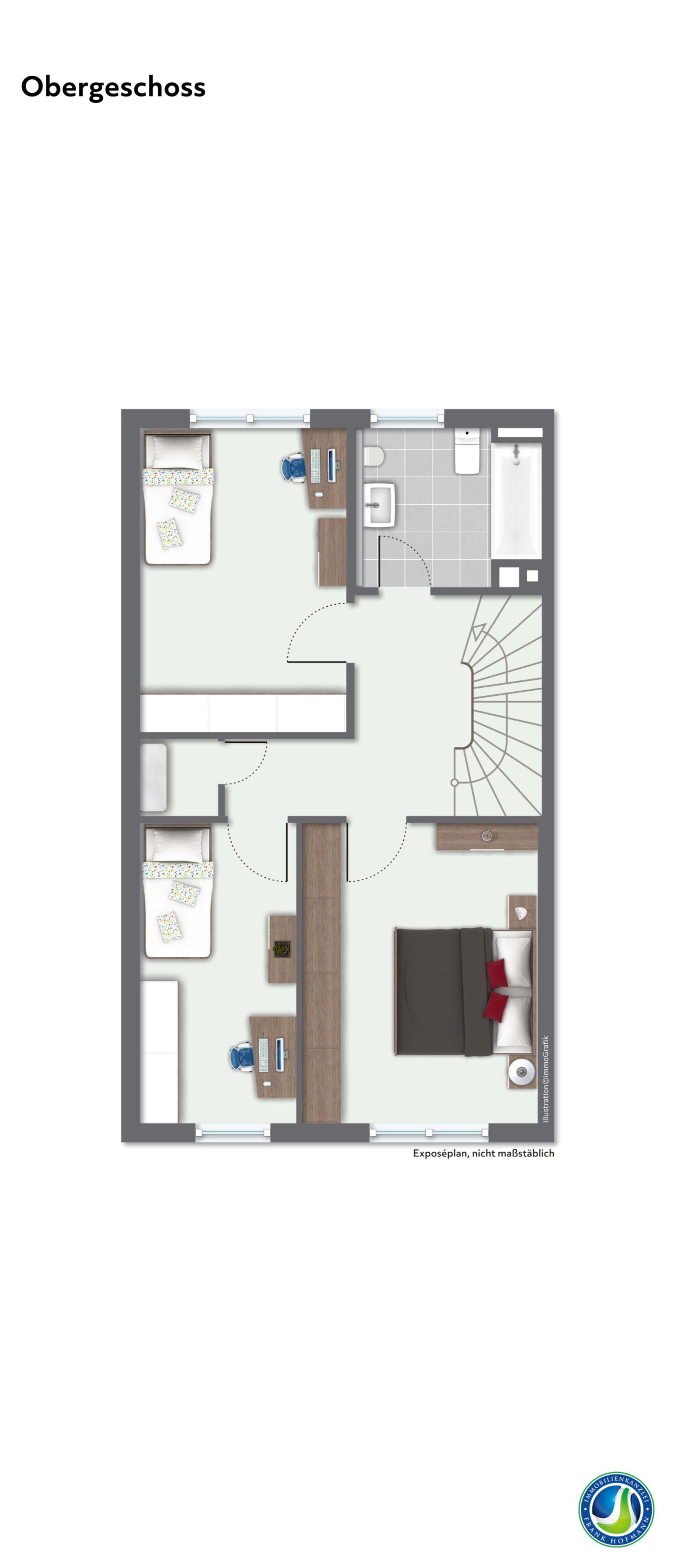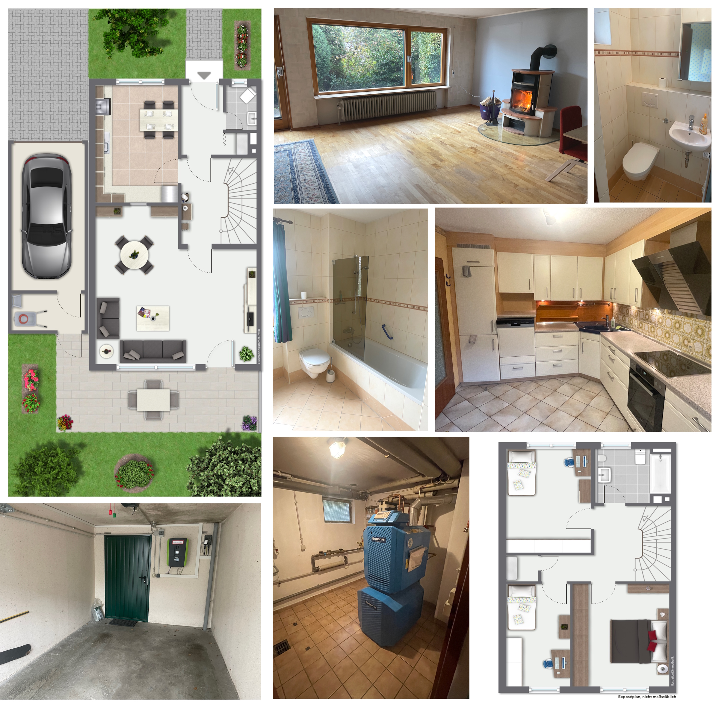 Die Zimmer verteilen sich geschickt über die verschiedenen Etagen. In jeder der Wohnetage ist entweder ein Duschbad, Wannenbad oder Gäste-WC vorhanden. Die Wandgestaltung und Bodenbeläge sind erneuerungsbedürftig und bieten Ihnen somit die Möglichkeit der individuellen Materialzusammenstellung. Das Gäste-WC und die beiden Bäder wurden vor ein paar Jahren erneuert. Die Fenster sind 2001 komplett erneuert worden und mit Aussenjalousien ausgestattet.