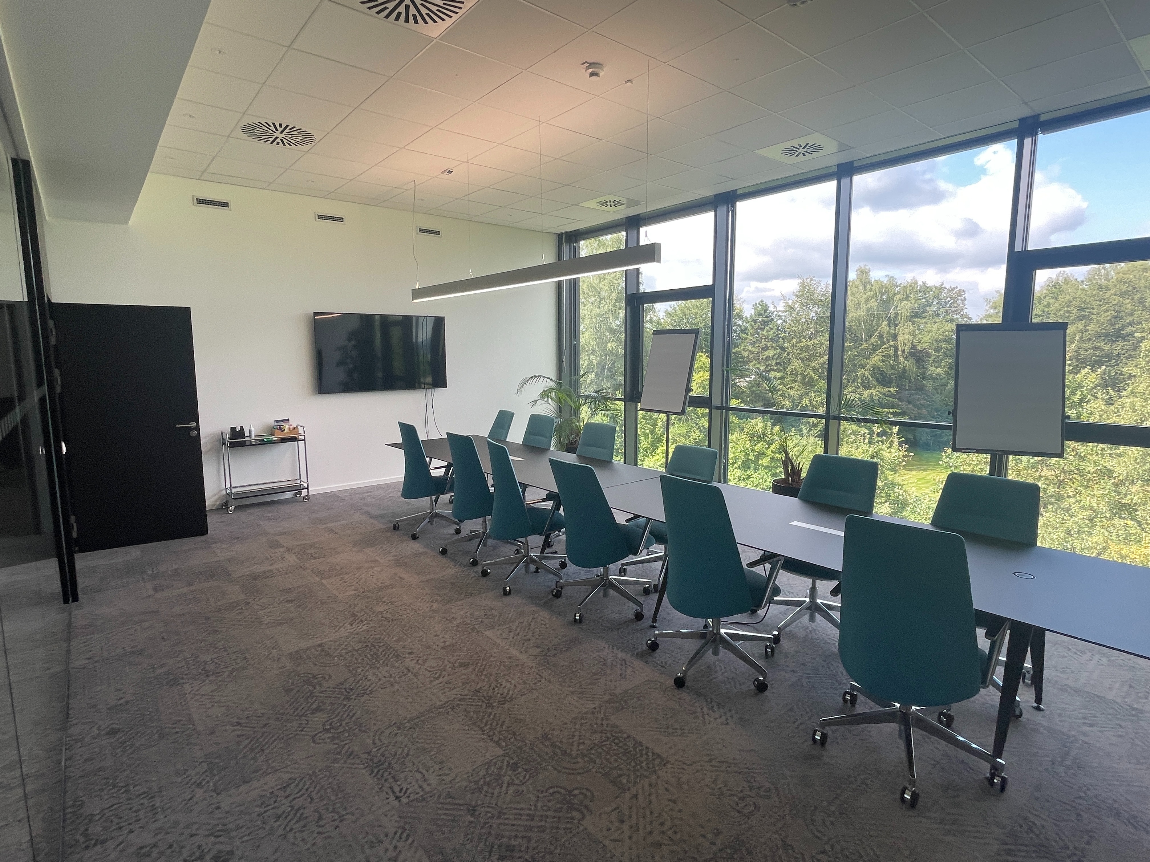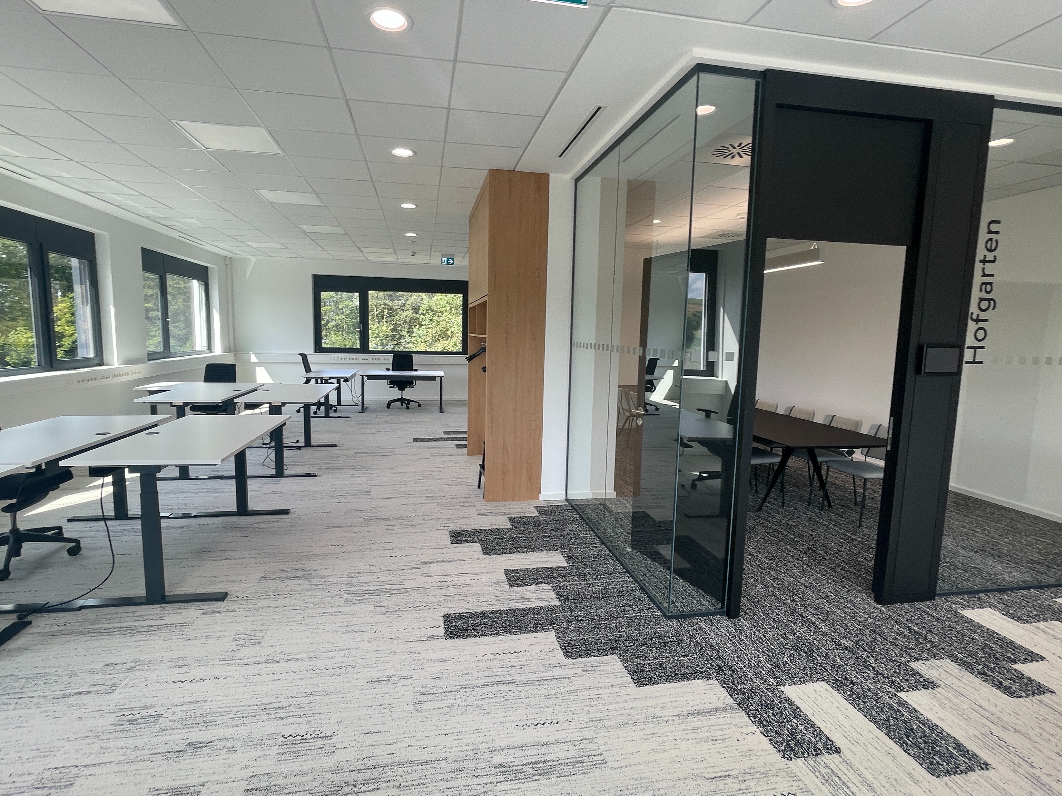 Modernes Bürogebäude mit verschieden großen Konferenzräumen (klimatisiert), hochwertige Objektausstattung, Casino/Mensa mit ca. 124 qm zuzügl. ca. 60 qm Terrasse, hochwertige Küche, Fitnessraum mit High-End-Ausstattung, Glasfaseranschluss, Personenaufzug, elektrische Verschattungsanlage, Be- und Entlüftungsanlage, mehrere Etagenküchen mit Quooker, 49 Stellplätze